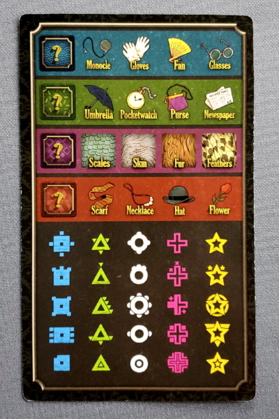 For most of the clues, it is not difficult to determine which of the suspects have them. However, the purple clues (fur, feathers, scales, or skin) can be harder to figure out because some of these features look alike for certain animals. The background of each Suspect card shows the appropriate feature to help, but that can still be hard to see in the heat of the game. Before the game starts, each player can sort their Suspect cards into piles based on these four different features to help once the game starts.