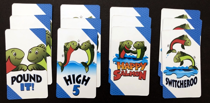 Happy Salmon can help develop some valuable skills in younger players. Finding trades is a good exercise in social interaction and verbal abilities. Performing the fun actions also helps with gross motor skills.