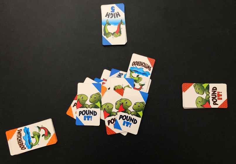Everyone plays simultaneously in this game, so all players will be yelling out their cards constantly. Young kids will need to listen to the other players and then respond quickly and with the proper action. These include high fives, fist bumps, happy salmon (slapping your arms together like flopping fish tails), and trading cards.