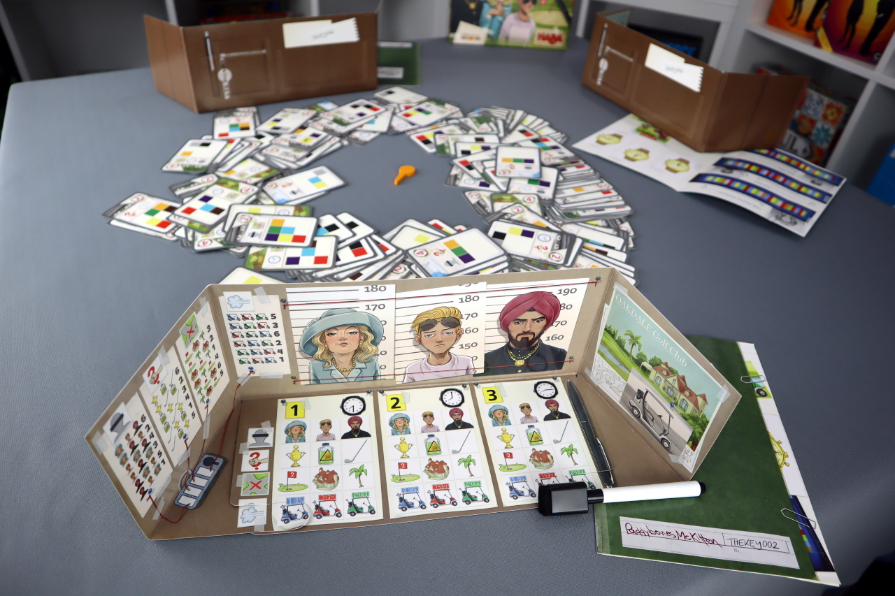 This game contains many elements of classic logic puzzles packaged in a very fun format. Working through these clues is great deductive reasoning practice, especially because some cards will only be useful when combined with elements from other cards.